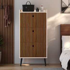 A Sapateira Dark conta com três gavetas basculantes, tornando o acesso aos calçados fácil e prático, já que a gaveta se inclina para baixo quando aberta, permitindo que você visualize e retire os sapatos com facilidade.