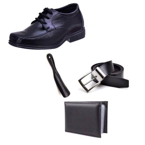 Kit Sapato Social Infantil Menino Solado PVC Cadarço Igreja Com Carteira Cinto e Calçadeira - 35 - Preto