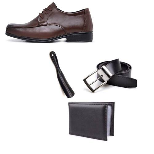 O Sapato Social Infantil vai deixar qualquer look mais divertido, o pé da criança vai conseguir manter uma pisada firme, deixando a brincadeira mais segura!CARACTERÍSTICAS DO PRODUTOMaterial: SintéticoEstilo da Peça: LisoFechamento: Ajuste CadarçoMaterial Interno: Tecido jackar dublado em eva 1,2 mmPalmilha: EVATipo de Bico: QuadradoAltura do Salto: 2,5 cmSolado: PVC MacioComplemento da Descrição: Kit composto por 1 par de Sapato Social, 1 Cinto, 1 Carteira e 1 CalçadeiraMEDIDAS APROXIMADAS20: 15 cm21: 15,5 cm22: 15,5 cm23: 16,5 cm24: 16,5 cm25: 17,0 cm26: 18,0 cm27: 19,0 cm28: 19,5 cm29: 20,0 cm30: 21,0 cm31: 21,5 cm32: 22,0 cm33: 22,5 cm34: 23,0 cm35: 24,0 cm36: 25,0 cmCIRCUNFERÊNCIA DO CANO20: 17,5 cm21: 17,5 cm22: 17,5 cm23: 17,5 cm24: 18,5 cm25: 19,0 cm26: 19,5 cm27: 19,5 cm28: 20,5 cm29: 21,0 cm30: 21,5 cm31: 21,5 cm32: 22,0 cm33: 22,5 cm34: 23,0 cm35: 23,5 cm36: 24,0 cmOBSERVAÇÃOOs produtos podem apresentar pequenas alterações na cor devido as configurações de cada monitor.DICAS DE CONSERVAÇÃONão mergulhe o seu calçado em água, utilize apenas um pano limpo, umedecido em água sem nenhum tipo de produto químico. Nunca utilize máquinas de lavar ou secar, deixe-os secar à sombra e longe de qualquer outra fonte de calor, pois poderá danificá-los. Não guarde seu calçado sujo, os resíduos que nele estarão armazenados, podem gerar corrosões e riscos.