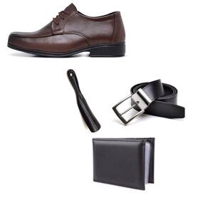 Kit Sapato Social Infantil Menino Solado PVC Cadarço Igreja Com Carteira Cinto e Calçadeira - 28 - Marrom