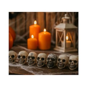 O kit saquinho enfeite mini crânio é perfeito para incrementar a decoração de festas de halloween com um toque sombrio e criativo. Cada saquinho contém mini caveiras realistas, ideais para compor cenários temáticos, enfeitar mesas, prateleiras ou complementar arranjos assustadores.