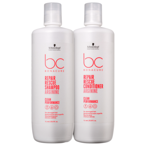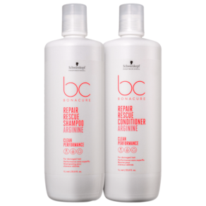 O Kit Schwarzkopf Professional BC Bonacure Clean Performance Repair Rescue Pro Duo conta com a ação da Arginina que reverte instantaneamente 3 anos de danos em apenas uma aplicação. Também apresenta uma fórmula clean beauty inovadora, 100% vegan, sem Sulfatos, Silicones, Óleos Minerais, Microplásticos e corantes artificiais, com um elevado nível de biodegradabilidade. Sua tecnologia avançada conta com Vegan Care Complex, além de ter embalagens sustentáveis em produtos de rendimento elevado.