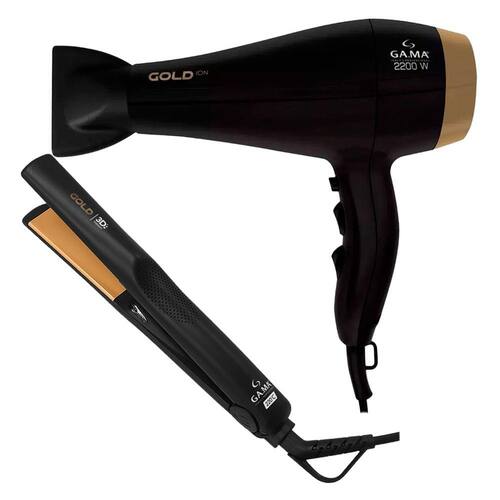 O Kit Secador 127v + Prancha Bivolt Gold Íon foi especialmente desenvolvido com a exclusiva tecnologia Essential Oil, ativada com o calor do produto, que nesta versão traz o óleo de Argan. Muito conhecido como o ouro líquido entre os profissionais cabeleireiros, é rico em ácidos graxos, ômega 9 e Vitamina E, sendo assim um antioxidante poderoso, que promove hidratação e nutrição profunda para os fios, combate o envelhecimento e protege dos efeitos negativos do calor. Além disso, possui a tecnologia 3D THERAPY que promove alta emissão de íons negativos, responsável por manter a umidade natural dos fios ao mesmo tempo em que fecha a cutícula capilar, resultando em cabelos mais saudáveis, sedosos e com menos frizz.