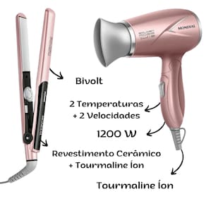 Transforme sua rotina de beleza com este kit sofisticado e funcional da Mondial, reunindo dois aparelhos essenciais para secar, alisar e destacar o brilho dos fios — tudo com estilo e praticidade na elegante cor Golden Rose.