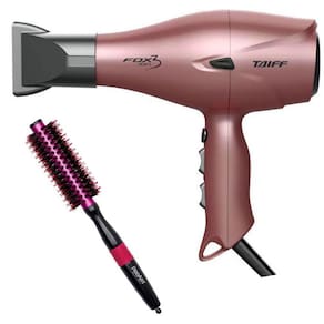 SECADOR DE CABELO PROFISSIONAL TAIFF FOX ION 3 ROSE 2200W - 127VCom tecnologia exclusiva, o produto conta com novo motor FF10, até 20% mais leve,aliando design sofisticado e potênciaMais leve, até 20%, os integrantes da linha têm como principal diferencial a tecnologia de seu novo motor FF10, com alta tecnologia e desempenho, desenvolvido para integrar potência de 2200W, qualidade e eficiência.Contam também com tampa traseira, novo sistema magnético exclusivo Taiff, facilitando sua retirada e limpeza.Com design sofisticado nas cores Soft Rosê e Soft Gold, o secador também possui a tecnologia de íons negativos e cerâmica, que proporciona cabelos disciplinados, sem frizz, com muito mais brilho e maciezConfira as características:Potência de 2200W;Motor FF10 profissional;5 temperaturas e 2 velocidades;Cabo de 3 metros;Borracha lateral;Botão para jato de ar frio;Argola para pendurar o produto;- Pode ser utilizado por várias horas- Super Leve- Garantia 6 meses pelo FabricanteOBS: ANÚNCIO CONTÉM APENAS 1 UNIDADE IMAGEM APENAS PARA COMPARAÇÃO DE TAMANHOESCOVA METALLIC PROAlisa e escova os fios com perfeição.Seu corpo em alumínio aquece rapidamente e distribui o calor de maneira uniforme, tornando o processo de secagem mais rápido.- Corpo térmico em alumínio- Absorve e distribui o calor- Escovação eficiente- Cerdas mistas de altura dupla: proporcionam maior tração - Com Hair Pick- Cabo ergonômico - Tufo reto