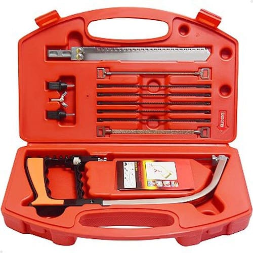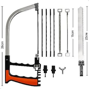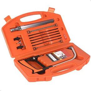 Inclui: 1 Arco de Serra 5 Lâminas de serra para uso geral 2 Lâminas de vidro para cerâmica, vidros, etc 1 Lâmina de serra grande para madeira/PVC 2 Brocas manuais para furar 1 Borboleta de Ajuste 1 Maleta para armazenamento e transporte