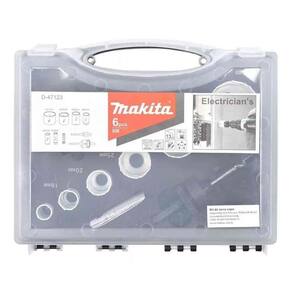 Kit serra copo bimetal 6 peças d-47123 makita para quem realiza trabalhos de marcenaria, colocação de azulejos e construção civil em geral, usar uma serra copo é indispensável. Isso porque essa poderosa ferramenta possui características únicas para a realização de trabalhos bem acabados, tais como dentes de aço ou diamantados, broca oca circular, rápida rotação e fácil empunhadura. Essa ferramenta pode ser empregada no uso particular e industrial.Características do produto:- marca: makita;- ideal para cortar aço, alumínio, cobre, latão, madeira e plástico;- corte rápido;- para quem realiza trabalhos de marcenaria, colocação de azulejos e construção civil em geral, usar uma serra copo é indispensável;- garantia: 3 meses.Dimensões das serras:- 16mm;- 20mm;- 25mm;- 32mm;- 40mm;- 51 mm.Imagens meramente ilustrativas, os objetos que ambientam as imagens não acompanham o produto