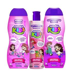 Kit Shampoo 500ml + Condicionador 500ml e Creme De Pentear Hn Kit Shampoo 500ml + Condicionador 500ml e Creme De Pentear Hidrata 300ml- Medix Kids