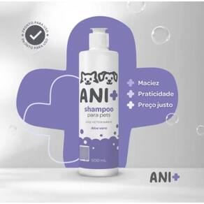Kit Completo Ani+ Shampoo + Condicionador + Colônia Pet Society Itens Inclusos no KIT: 1 - Shampoo Ani+ 500 ML 1 - Condicionador Ani+ 280 ML 1 - Colônia Ani+ 120 ML Limpeza, cuidado e hidratação para uma pelagem impecável O Kit Completo Ani+ Petsociety é a solução perfeita para manter a pelagem do seu pet limpa, saudável e radiante. Desenvolvido com uma fórmula de alta qualidade e dermatologicamente testada, ele remove impurezas, hidrata profundamente e realça o brilho natural dos pelos, proporcionando um banho completo e seguro. Ideal para cães e gatos de todas as raças, este shampoo é suave e eficaz, oferecendo um momento de cuidado e carinho para seu amigo de quatro patas. Por que escolher o Kit Ani+ Petsociety 1 - Limpeza profunda e suave: Remove sujeiras e resíduos sem agredir a pele. 2 - Hidratação intensa: Mantém os pelos macios e brilhantes por mais tempo. 3 - Fórmula segura: Dermatologicamente testada, ideal para peles sensíveis. 4 - Uso versátil: Indicado para todas as raças e tipos de pelagem. 5 - Perfume encantador: Aroma leve e duradouro que deixa seu pet ainda mais irresistível. Indicado para: 1 - Cães e gatos de todas as idades e raças. 2 - Pets que precisam de um cuidado delicado e eficaz. 3 - Tutores que valorizam a saúde e beleza da pelagem de seus pets. Como usar: 1 - Molhe a pelagem do pet com água morna. 2 - Aplique o shampoo em quantidade adequada, espalhando e massageando suavemente até formar espuma. 3 - Deixe agir por alguns minutos para melhores resultados. 4 - Enxágue completamente e seque bem o seu pet. Diferenciais que fazem do Kit Ani+ Petsociety uma escolha indispensável: 1 - Alta qualidade: Produto desenvolvido por especialistas em higiene e bem-estar animal. 2 - Resultados visíveis: Brilho, maciez e perfume que duram mais tempo. 3 - Cuidado completo: Ideal para banhos frequentes sem prejudicar a pele ou os pelos. Transforme o banho do seu pet Compre agora o Kit Ani+ Petsociety e ofereça o cuidado que ele merece. de Satisfação: Resultados incríveis ou seu dinheiro de volta Clique em Comprar Agora e garanta uma pelagem limpa, saudável e encantadora para o seu pet