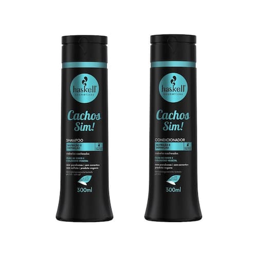 Kit shampoo + condicionador 300ml cachos sim Descrição shampoo haskell cachos sim 300ml o shampoo haskell cachos sim 300ml é desenvolvido especialmente para cabelos cacheados e crespos. Sua fórmula suave limpa delicadamente os fios, removendo impurezas e resíduos sem agredir a estrutura capilar. Enriquecido com ingredientes hidratantes, ele promove a hidratação e a definição dos cachos, deixando-os macios, saudáveis e com brilho. Condicionador haskell cachos sim 300ml o condicionador haskell cachos sim 300ml é formulado especialmente para cabelos cacheados e crespos, oferecendo hidratação profunda e definição. Com ingredientes naturais que promovem a maciez e o controle do frizz, esse condicionador ajuda a manter os cachos bem definidos e com movimento. Sua fórmula leve não pesa nos fios, garantindo brilho e suavidade, além de facilitar o desembaraço e a manutenção dos cachos.
