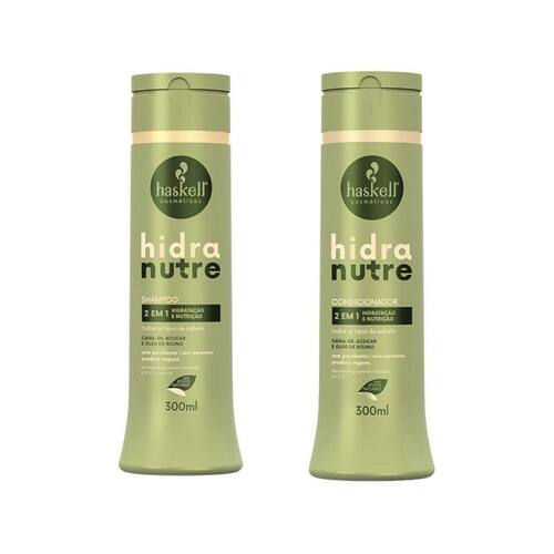 Kit shampoo + condicionador 300ml hidranutre Descrição Shampoo haskell 300ml hidranutre O shampoo haskell hidranutre 300ml foi formulado para proporcionar uma limpeza suave enquanto hidrata profundamente os fios. Com ativos que nutrem e restauram a umidade natural do cabelo, este shampoo ajuda a manter os fios macios, brilhantes e saudáveis, reduzindo o frizz e melhorando a textura. Condicionador haskell 300ml hidranutre O condicionador haskell hidranutre 300ml foi desenvolvido para complementar a hidratação do shampoo, proporcionando nutrição e maciez aos fios. Sua fórmula leve desembaraça e revitaliza os cabelos, deixando-os sedosos, com brilho intenso e fácil de pentear.