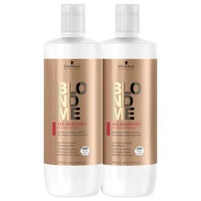 O Kit BlondMe Enriquecido para Todos os Loiros conta com um shampoo que reconstrói e revitaliza as pontes capilares interiores, enquanto limpa e um condicionador que desembaraça instantaneamente o cabelo, ajudando a oferecer um brilho reluzente e fortalecendo a estrutura capilar interna em até 90%.
