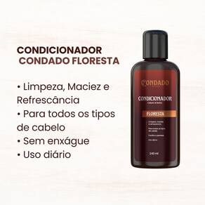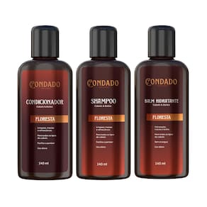 Kit Condado Floresta - Shampoo + Condicionador + Balm Hidratante 140ml ProfissionalO Kit Condado Floresta foi desenvolvido para quem valoriza cuidados completos, resistência dos fios e fragrâncias marcantes. Esse kit une Shampoo, Condicionador e Balm Hidratante, promovendo limpeza, hidratação e nutrição para cabelos, barba e bigode, com sensação de frescor e vitalidade. O shampoo age removendo impurezas e oleosidade, mantendo o couro cabeludo saudável.