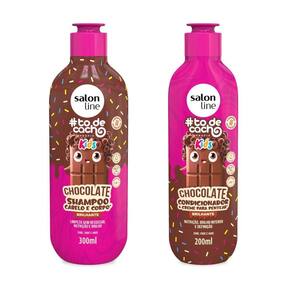 Contém: 01 - Shampoo ToDeCachos Kids Chocolate 300ml, Salon Line 01 - Condicionador ToDeCachos Kids Chocolate, 200ml, Salon Line O Kit Shampoo + Condicionador de Chocolate da linha ToDeCachos Kids da Salon Line foi criado especialmente para proporcionar super nutrição, brilho e definição aos cabelos das crianças. Com uma fórmula segura, suave e um cheirinho delicioso de chocolate, ele deixa os fios mais macios, hidratados e cheios de vida, garantindo cachinhos bem cuidados e desembaraçados com facilidade. Um de seus componentes é o cacau, que é rico em nutrientes e hidrata e fortalece os fios. Ambos os produtos nesse kit são 2 em 1, o shampoo pode ser no cabelo e no corpo. Ele limpa suavemente, hidratando e protegendo os fios e a pele. Já o condicionador pode ser também como creme de pentear, nutrindo, desembaraçando e definindo os cachos. Características Principais: - Shampoo 300ml; - Condicionador 200ml; - Produtos 2 em 1; - Proporciona nutrição, brilho e definição; - Fios mais macios, hidratados e cheios de vida; - Fácil desembaraço; - Fórmula enriquecida com cacau. Marca: Não Informado Ean: 7908458328888