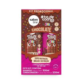 Contém: 01 - Shampoo ToDeCachos Kids Chocolate 300ml, Salon Line 01 - Condicionador ToDeCachos Kids Chocolate, 200ml, Salon Line O Kit Shampoo + Condicionador de Chocolate da linha ToDeCachos Kids da Salon Line foi criado especialmente para proporcionar super nutrição, brilho e definição aos cabelos das crianças. Com uma fórmula segura, suave e um cheirinho delicioso de chocolate, ele deixa os fios mais macios, hidratados e cheios de vida, garantindo cachinhos bem cuidados e desembaraçados com facilidade. Um de seus componentes é o cacau, que é rico em nutrientes e hidrata e fortalece os fios. Ambos os produtos nesse kit são 2 em 1, o shampoo pode ser no cabelo e no corpo. Ele limpa suavemente, hidratando e protegendo os fios e a pele. Já o condicionador pode ser também como creme de pentear, nutrindo, desembaraçando e definindo os cachos. Características Principais: - Shampoo 300ml; - Condicionador 200ml; - Produtos 2 em 1; - Proporciona nutrição, brilho e definição; - Fios mais macios, hidratados e cheios de vida; - Fácil desembaraço; - Fórmula enriquecida com cacau. Marca: Não Informado Ean: 7908458328888