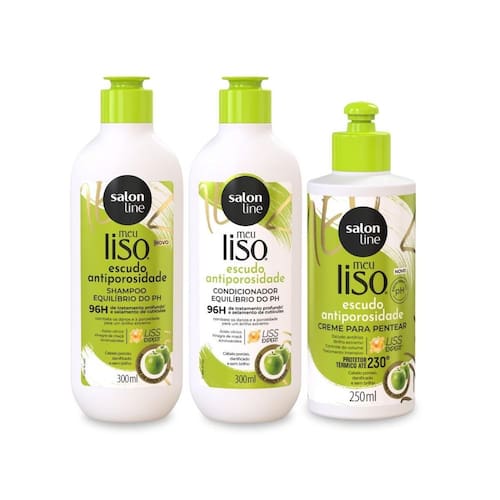 Contém: 01 - Shampoo Escudo Antiporosidade 300ml, Salon Line 01 - Condicionador Escudo Antiporosidade 300ml, Salon Line 01 - Creme Para Pentear Escudo Antiporosidade 250ml, Salon Line