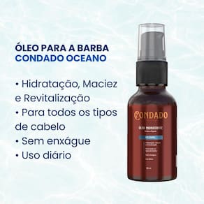 Kit Condado Oceano - Shampoo + Condicionador + Óleo Hidratante para Barba 140ml ProfissionalO Kit Condado Oceano foi criado para homens que buscam praticidade, cuidado completo e estilo no dia a dia. Composto por Shampoo, Condicionador e Óleo Hidratante para Barba, ele garante fios mais limpos, hidratados, macios e uma barba bem cuidada com perfume exclusivo.
