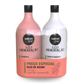 Contém: 01 - Shampoo S.O.S. Hidratação com óleo de rícino Salon Line 1L. 01 - Condicionador S.O.S. Hidratação com óleo de rícino Salon Line 1L.