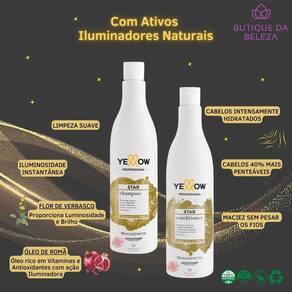 Kit shampoo e condicionador yellow star Este kit contém01 shampoo yellow star 500ml01 condicionador yellow star 500mlYellow star é a linha vegana com princípios ativos 100% naturais e sustentáveis, que realçam a luminosidade natural dos cabelos.Ativos da linha- óleo de argan.Rico em ômegas 3, 6, e vitamina e, que revitalizam o fio e devolvem toda a vida e beleza.- óleo de coco.Profundamente nutritivo e emoliente, também é rico em vitamina e. Repõe todos os ingredientes necessários ao fio saudável.Indicado- cabelos opacos.- cabelos com necessidade de luminosidade.- todos os tipos de cabelos.Benefícios- cabelos com 35% mais brilho.- cabelos com 40% mais penteabilidade.- poder iluminador de 72h.- maciez.- hidratação.- limpeza.- shampooO shampoo para brilho yellow star deixa seus cabelos mais luminosos, leves e fáceis de desembaraçar a partir do primeiro uso.- condicionadorO condicionador yellow star traz uma fórmula que hidrata e proporciona maciez sem pesar os fios, além de deixar seus cabelos desembaraçados e com uma luminosidade como nunca visto antes.Modo de uso ShampooAplicar sobre o couro cabeludo e cabelos molhados. Massagear delicadamente e depois enxaguar. CondicionadorCom cabelo úmido, aplicar ao longo dos comprimentos e das pontas, deixar agir de 2 a 3 minutos. Enxaguar. DicaPara melhores resultados, use a linha completa yellow star.