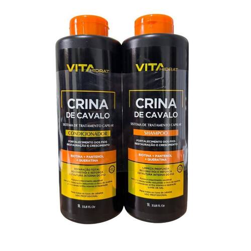 Kit shampoo e condicionador para crescimento acelerado dos cabelos crina de cavalo vita hidrat 1l Crina de cavalo shampoo