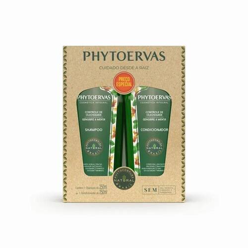 Atributos do Produto:O Kit Shampoo e Condicionador Phytoervas Controle de Oleosidade é formulado com gengibre e menta, ativos reconhecidos por suas propriedades adstringentes. Essa poderosa combinação limpa suavemente o couro cabeludo, controlando a oleosidade excessiva e deixando os fios mais leves e saudáveis.