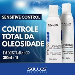 Shampoo Anti-Oleosidade Sensitive Salles , Tratamento controle da Oleosidade e Anti Queda Limpa profundamente, removendo a oleosidade excessiva e os resíduos químicos de outros produtos, e da poluição, couro cabeludo mais limpo. É o produto ideal na higiene diária dos cabelos para pessoas que tem a tendência de queda de cabelos. Para o sucesso e cuidados com os cabelos, complete a lavagem com o Condicionador Anti-Oleosidade Sensitive Control Salles . Contem: Extrato natural de Jaborandi Policarpus Jaborandi H que atua a nível das raízes e bulbos capilares, revigorando e facilitando o crescimento dos cabelos. Alecrim ajudam a manter a saúde do couro cabeludo e balancear o excesso de oleosidade, prevenindo o aparecimento da caspa. Passo a Passo: Aplique o Shampoo Anti-Oleosidade Sensitive Control Salles , massageando os cabelos durante alguns minutos para assegurar a plena ação dos ingredientes ativos. Enxaguar. Para um Melhor resultado Após utilizar o Shampoo Anti-Oleosidade Sensitive Control Salles , aplique o Condicionador Sensitive no cabelo ainda molhado. Massageie o couro cabeludo. Deixe agir de 1 a 2 minutos e enxágue. Para obter melhores resultados, use diariamente. Efeito: Cabelos brilhantes e com vitalidade Condicionador Anti-Oleosidade Sensitive Salles , Tratamento controle da Oleosidade e Anti Queda Nutre profundamente, controlando a oleosidade. O couro cabeludo mais limpo facilita a absorção do com aminoácidos, o Condicionador Anti-Oleosidade Sensitive Control repõe a proteína e nutre profundamente o couro cabeludo. Contem: Extrato natural de Jaborandi Policarpus Jaborandi H que atua a nível das raízes e bulbos capilares, revigorando e facilitando o crescimento dos cabelos. Alecrim ajudam a manter a saúde do couro cabeludo e balancear o excesso de oleosidade, prevenindo o aparecimento da caspa. Passo a Passo: Após utilizar o Shampoo Anti-Oleosidade Sensitive Control Salles , aplique o Condicionador Sensitive Control no cabelo ainda molhado. Massageie o couro cabeludo. Deixe agir de 1 a 2 minutos e enxágue. Para obter melhores resultados, use diariamente. Efeito: Cabelos brilhantes e com vitalidade Marca: Não Informado Ean: 7898700162417