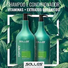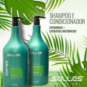 O Shampoo THERAPY Capilar - Salles Foi criado para ser em todos os tipos de cabelo limpa os fios proporcionando-lhes brilho, vitalidade e aparência saudável. Refrescância ao couro cabeludo. Contém: Vitaminas e Extratos Botânicos Passo a Passo: Aplicar o Shampoo THERAPY Capilar Salles sobre os cabelos molhados massageando-os bem. Enxaguar e repetir a operação. Utilizar regularmente com o condicionador THERAPY Capilar Salles para completar a manutenção de tratamento cosmético capilar. Indicação: Para raízes oleosas. Efeito: Cabelos brilhantes e com vitalidade. Condicionador THERAPY Capilar - Salles Possui em sua formula agentes condicionantes que amaciam e desembaraçam os fios com facilidade. Promove brilho e maciez sendo ideal para os enxagues. Logo após finalize como desejar. Contém: Vitaminas e Extratos Botânicos Passo a Passo: Aplicar o Shampoo THERAPY Capilar Salles sobre os cabelos molhados massageando-os bem. Enxaguar e repetir a operação. Utilizar regularmente com o condicionador THERAPY Capilar Salles para completar a manutenção de tratamento cosmético capilar. Indicação: Para raízes oleosas. Efeito: Cabelos brilhantes e com vitalidade.