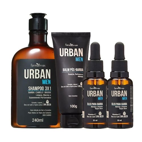 Kit Shampoo Masculino 31 Balm Hidratante Pós e 2 Óleos para Barba Urban Men