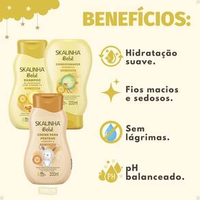 Composto por Shampoo, Condicionador e Creme Para Pentear, todos enriquecidos com extrato de camomila, este kit foi pensado para proporcionar momentos de carinho e cuidado, deixando os cabelos do bebê macios, cheirosos e fáceis de manusear, desde o banho até a finalização.