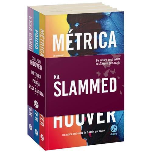 Da autora best-seller mundial de É assim que acaba, Colleen Hoover, a série Slammed é best-seller do NYT e contém seu romance de estreia, Métrica. Pela primeira vez em um kit, confira a série completa com capas inéditas no Brasil.Em Métrica, Hoover captura de maneira inesquecível toda a magia e as incertezas do primeiro amor, enquanto duas pessoas formam uma conexão improvável, antes de descobrirem que o destino possui outros planos.Em Pausa, Layken e Will precisarão passar por muitas dificuldades para talvez entenderem que duas pessoas precisam se afastar, para perceber o quanto realmente pertencem juntas.Em Essa Garota, último volume da série, os leitores irão descobrir que há dois lados para toda história de amor. Will conta a história do complicado relacionamento dos dois a partir do seu ponto de vista. O futuro depende de como eles irão lidar com o passado na conclusão da série Slammed.