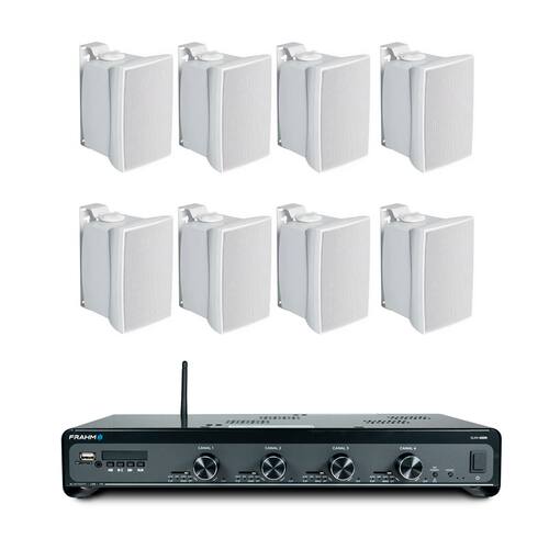 Este kit é uma solução de áudio premium e de grande capacidade, ideal para sonorizar múltiplas zonas ou grandes espaços, combinando alta potência de amplificação com pontos de áudio de alta fidelidade para instalação discreta. O centro de comando é o Amplificador Estéreo Digital Slim, que se destaca por sua alta potência de saída, capaz de gerenciar com facilidade até oito caixas acústicas. Seu design compacto facilita a integração em racks. A conectividade é completa, incluindo conexão sem fio (Bluetooth) de longo alcance e entrada óptica digital para máxima qualidade de áudio de fontes modernas.