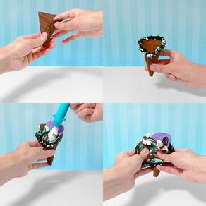 Com o Kit Slimy de Sorvete Slimy Gelateria, as crianças podem criar sorvetes de slime superrealistas em cones ou rolos! Misture e modele os ingredientes para formar sorvetes deliciosos, decorando com confeitos e brilhos. Depois, esmague para uma sensação cremosa e divertida. Ideal para estimular a criatividade e habilidades motoras, proporcionando uma experiência sensorial única e divertida.