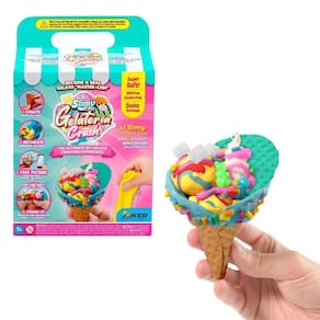 Com o Kit Slimy de Sorvete Slimy Gelateria, as crianças podem criar sorvetes de slime superrealistas em cones ou rolos! Misture e modele os ingredientes para formar sorvetes deliciosos, decorando com confeitos e brilhos. Depois, esmague para uma sensação cremosa e divertida. Ideal para estimular a criatividade e habilidades motoras, proporcionando uma experiência sensorial única e divertida.