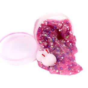 - O kit inclui: 1 recipiente reutilizável, Slimygloop, bolas de isopor, glitter hexagonal, 1 coelho de apertar