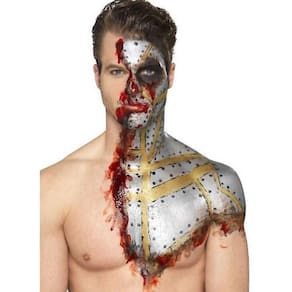 Massa slug: Pode ocorrer algum tipo de alergia Pode ocorrer alergia, caso você tenha sensibilidade a alguns componentes citados acima. Com slug você pode caminhar ao sol sem nenhum tipo de preocupação em relação a reação alérgica, pois ela não contém nenhum tipo de cola ou amônia. Os ingredientes utilizados neste produto são reconhecidamente seguros. Como ocorre em alguns cosméticos, algumas pessoas podem apresentar sensibilidade a algum componente. Recomenda-se aplicar o produto em uma pequena quantidade na parte interna do pulso e removendo-o após 30 minutos. Aconselhamos a usar em crianças acima de 7 anos de idade com o auxilio de um adulto para evitar ingestão acidental. Quanto tempo leva para secar Dependendo da espessura da maquiagem ela seca em aproximadamente 20 minutos. Se tiver utilizado algodão ou gaze ela demora um pouco mais, neste caso você poderá acelerar o processo da secagem com auxilio de secador na temperatura fria e com distância de 30 cm do local aplicado. qual a duração Dura de 1h a 2 horas na pele podendo varias de acordo com o tempo temperatura, ambiente, clima . Ou dependendo dos cuidados de quem está usando como: excesso de suor, ou ficar colocando/ retocando várias vezes, podendo levar a maquiagem a se desmembrar. A maquiagem slug proporciona que o ator/atriz movimente livremente o rosto sem perder as expressões. A massa craquela algum tempo depois de colocada pois como contém água, esta evapora. Para prolongar a durabilidade desta aconselhamos assistir tutoriais no canal terror slug. Lá existem técnicas de algodão e outros mais direcionados a profissionais da área. Como retirar Retirar com água morna e sabão neutro, se quiser, papel higiênico para retirar o excesso e depois um demaquilante também é aconselhável. Usamos também lenços umidecidos. Dicas básicas: Quando fizer uma maquiagem no rosto dos clientes, não esquecer de colocar uma toalhinha para evitar eventuais problemas em relação a pingos. Para realizar a maquiagem deixe sempre um pote pequeno de água para poder molhar aos poucas a espátula ou os dedos para dar acabamento nas laterais Massa Magica . Kit de Maquiagem de Terror para Festas e Teatro, ideal para criar efeitos de queimadura, cortes, feridas e hematomas. Pode ser Utilizado em Peças Teatrais, Festas de Terror, Festa de Halloween, Dia das Bruxas, Truques de Ilusionismo, e também para cobertura de tatuagens. O kit rende de 10 a 15 feridas pequenas. látex: látex centrifugado pré vulcanizado. Utilizado geralmente no auxílio para impermeabilizar a maquiagem/massa, proporcionando cenas externas na chuva, mergulho, etc... Também para prolongar a duração da mesma. Aconselha-se que este produto seja Utilizado por , pois requer muitos cuidados na manipulação. látex de alta qualidade especialmente formulado pra confecção de máscaras e próteses em geral para maquiagem e objetos. Encha o molde de gesso com látex até a boca, deixe descansar por algumas horas, despeje o látex de volta no frasco e deixe o molde de boca pra baixo até que o látex seque por completo, passe talco dentro e fora da peça de látex para que as paredes não grudem entre si.. Para tingir o látex use corantes a base de água. OBS: Cuidado ao fazer uso do látex perto de tecidos e ou roupas, pois ele danifica e não sai mais.
