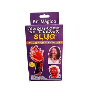 Ideal para criar efeitos de feridas, cortes, queimaduras ou hematomas. Pode ser em festas, peças teatrais, maquiagem artística e também para cobertura de tatuagens e ilusionismo. Rende de 10 a 15 feridas pequenas. Fácil de aplicar e remover. O kit de maquiagem de terror slug contém: Massa mágica slug 50gr; Sangue preto artificial para queimadura 10ml; Sangue vermelho artificial para feridas 10ml; Espátula para aplicação da maquiagem; Instruções de uso. Produto não comestível: A massa, o sangue e a queimadura são 90% naturais, a base de talco, amido de trigo e glicerina. Contém hidratante e filtro solar. Você pode caminhar no sol sem nenhum tipo de preocupação em relação a reação alérgica, pois o produto não contém nenhum tipo de cola ou amônia. Aconselhamos usar em crianças acima de 07 anos de idade e com o auxílio de um adulto para evitar ingestão acidental. Seca em aproximadamente 20 minutos dependendo da espessura da maquiagem. Permanece por 4 a 5 horas na pele podendo variar de acordo com o clima, temperatura e ambiente. Remover com água e sabão. Kit maquiagem de terror Maquiagem sangue fake Maquiagem queimadura fake Massa de maquiagem Maquiagem hidrossolúvel Maquiagem para cosplay Maquiagem de filme de terror Efeito de ferida Maquiagem assustadora Maquiagem especial para halloween Efeitos especiais de maquiagem Maquiagem de alta realismidade Kit maquiagem artística Maquiagem de terror Fantasia com efeitos especiais Maquiagem para festas temáticas Maquiagem para teatro e cinema Produtos para efeitos de ferida