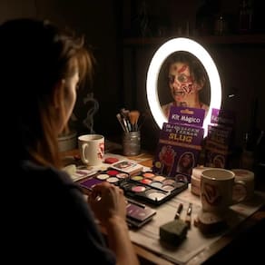 Kit slug + latex liquido ideal para criar efeitos de feridas, cortes, queimaduras ou hematomas. Pode ser em festas, peças teatrais, maquiagem artística e também para cobertura de tatuagens e ilusionismo. Rende de 10 a 15 feridas pequenas. Fácil de aplicar e remover. O kit de maquiagem de terror slug contém: Massa mágica slug 50gr; Sangue preto artificial para queimadura 10ml; Sangue vermelho artificial para feridas 10ml; Espátula para aplicação da maquiagem; Instruções de uso. Produto não comestível: A massa, o sangue e a queimadura são 90% naturais, a base de talco, amido de trigo e glicerina. Contém hidratante e filtro solar. Você pode caminhar no sol sem nenhum tipo de preocupação em relação a reação alérgica, pois o produto não contém nenhum tipo de cola ou amônia. Aconselhamos usar em crianças acima de 07 anos de idade e com o auxílio de um adulto para evitar ingestão acidental. Seca em aproximadamente 20 minutos dependendo da espessura da maquiagem. Permanece por 4 a 5 horas na pele podendo variar de acordo com o clima, temperatura e ambiente. Remover com água e sabão. Látex bi centrifugado pré vulcanizado Utilizado geralmente no auxílio para impermeabilizar a maquiagem/massa, proporcionando cenas externas na chuva, mergulho, etc... Também para prolongar a duração da mesma. Aconselha-se que este produto seja utilizado por , pois requer muitos cuidados . O produto possui cheiro um pouco forte em seu estado líquido. Quando seca também permanece um cheiro de borracha. Obs: cuidado ao fazer uso do látex perto de tecidos e ou roupas, pois ele danifica e não sai mais. Recomenda-se fazer um teste de alergia antes do uso do látex, pois ele possui amonia em sua composição. Kit maquiagem de terror Maquiagem sangue fake Maquiagem queimadura fake Massa de maquiagem Maquiagem hidrossolúvel Maquiagem para cosplay Maquiagem de filme de terror Efeito de ferida Maquiagem assustadora Maquiagem especial para halloween Efeitos especiais de maquiagem Maquiagem de alta realismo Kit maquiagem artística Maquiagem de terror Fantasia com efeitos especiais Maquiagem para festas temáticas Maquiagem para teatro e cinema Produtos para efeitos de ferida Marca: Não Informado Ean: 7793392712417