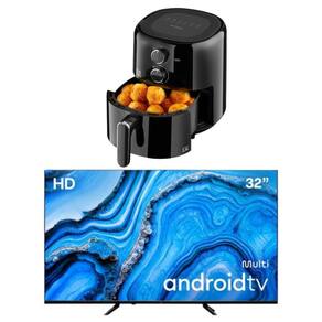Kit Smart TV DLED 32 HD Multi Android 11 + Fritadeira Elétrica sem óleo Air Fryer 3,5L 127V