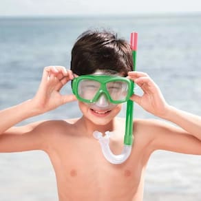 Kit snorkel com máscara freestyle Bestway para mergulhototalmente ajustável e compacto Okit freestyle da Bestway é composto por 1 snorkel e 1 máscara de mergulho!Indicado para adultos e crianças a partir de 7 anos, ele é super compacto eleve para ser carregado em qualquer aventura marítima.Ele conta com lentes em policarbonato que possuem revestimento de proteção UV,borda com aresta de sobreposição dupla para ajuste preciso e consequentementemaior resistência a soltura.Sua faixa da cabeça é bipartida e totalmente ajustável, sem contar que a peçabucal do snorkel foi projetada para ser ajustável e gerar maior conforto paraos usuários.O freestyle é 100% livre de látex.Recomendamos que a atividade de mergulho para crianças seja supervisionada porum adulto.Informações gerais: Material: Lentes de policarbonato e partes em plástico Contém: 1 snorkel + 1 máscara Indicação: Adultos e crianças Marca: Bestway Tamanho: Único Cor: Verde