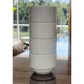 Kit sobremesa, conjunto com 4 tigelas empilháveis 180ml - Porcelana branca