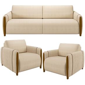 O Kit de Sofá com Poltrona Flora promete marcar com elega^ncia e versatilidade á presença em diversos estilos de decorac¸a~o. O modelo certo é essencial para o bom funcionamento dos cômodos da casa, por isso, um sofá bem estruturado é mais do que necessário na sala de estar! O design aconchegante se destaca junto aos pés madeirados e o revestimento em linho! Extremamente elegante, que transmite a nobreza que ele precisa! Tudo isso para gerar conforto para você e sua família em uma peça única feita com todo cuidado e observada nos detalhes para superar as suas expectativas! Adquira o seu!