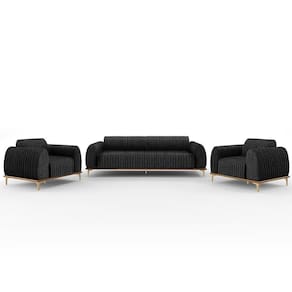 Com bastante personalidade e beleza ímpar o Kit Sofá 2 Lugares 150cm Com 2 Poltronas Molino Pés D'ouro D02 Linho Chumbo D-465 - Lyam Decor vem para requintar ainda mais sua decoração. Amplamente sofisticado, é ideal se você está buscando por peças elegantes e confortáveis. Possui acabamentos impecáveis, é estruturado em madeira de eucalipto tratado, unidas com grampos galvanizados, base envernizada e pés de alumínio com metalização na cor DOuro que o tornam ainda mais atraente e convidativo.