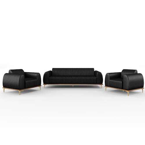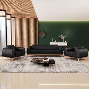 Com bastante personalidade e beleza ímpar o Kit Sofá 2 Lugares 150cm Com 2 Poltronas Molino Pés D'ouro D02 Couríssimo Preto B-159 - Lyam Decor vem para requintar ainda mais sua decoração. Amplamente sofisticado, é ideal se você está buscando por peças elegantes e confortáveis. Possui acabamentos impecáveis, é estruturado em madeira de eucalipto tratado, unidas com grampos galvanizados, base envernizada e pés de alumínio com metalização na cor D’Ouro que o tornam ainda mais atraente e convidativo.