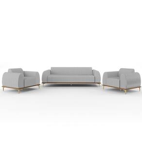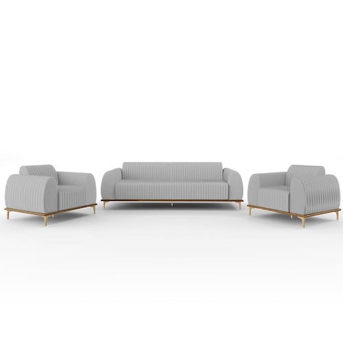 Com bastante personalidade e beleza ímpar o Kit Sofá 2 Lugares 150cm Com 2 Poltronas Molino Pés D'ouro D02 Linho Cinza D-315 - Lyam Decor vem para requintar ainda mais sua decoração. Amplamente sofisticado, é ideal se você está buscando por peças elegantes e confortáveis. Possui acabamentos impecáveis, é estruturado em madeira de eucalipto tratado, unidas com grampos galvanizados, base envernizada e pés de alumínio com metalização na cor D’Ouro que o tornam ainda mais atraente e convidativo.