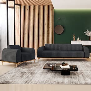 Com bastante personalidade e beleza ímpar o Kit Sofá 2 Lugares 150cm Com Poltrona Molino Pés D'ouro D02 Linho Cinza Escuro - Lyam Decor vem para requintar ainda mais sua decoração. Amplamente sofisticado, é ideal se você está buscando por peças elegantes e confortáveis. Possui acabamentos impecáveis, é estruturado em madeira de eucalipto tratado, unidas com grampos galvanizados, base envernizada e pés de alumínio com metalização na cor D’Ouro que o tornam ainda mais atraente e convidativo.