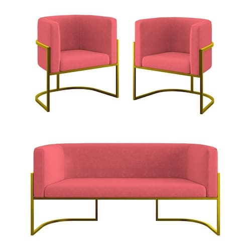 Kit Sofá 2 Lugares + 2 Poltronas Para Recepção Balaqui Rosa
