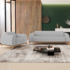 Com bastante personalidade e beleza ímpar o Kit Sofá 2 Lugares Sala Estar 150cm E Poltrona Molino Pés D'ouro D02 Linho Cinza D-315 - Lyam Decor vem para requintar ainda mais sua decoração. Amplamente sofisticado, é ideal se você está buscando por peças elegantes e confortáveis. Possui acabamentos impecáveis, é estruturado em madeira de eucalipto tratado, unidas com grampos galvanizados, base envernizada e pés de alumínio com metalização na cor D’Ouro que o tornam ainda mais atraente e convidativo.