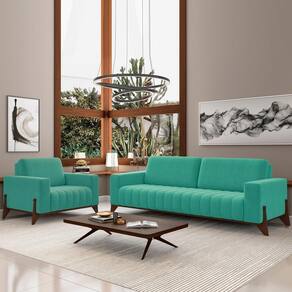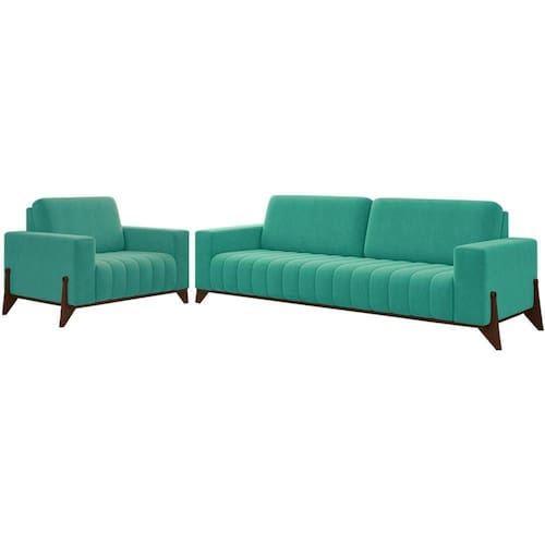 Kit Sofa 232 cm E Poltrona Decorativa Veron Veludo, com estilo único e a qualidade que você busca, seu desenho clean dispõe de harmonia para qualquer ocasião. Estrutura em madeira de reflorestamento (pinus, eucaliptos e placas de OSB) e cintas elásticas de alta resistência. Compostos por madeira imunizada contra mofo, cupim e microrganismos, revestimento em tecido veludo, encosto fixo em almofada com fibras e flocos, revestida com kami e manta acrílica, assento em espuma D-26 - D-26 soft com manta acrílica, braça em espuma D-23, adornos em espuma D-16, acabamento inferior em kami e base em madeira. Suportando até 120 kg cada. Possui design requintado, que oferece sofisticação, charme e elegância ao seu ambiente. Estes móveis chegarão na sua casa separado em 02 volumes.