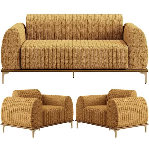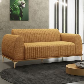 Revestimento em Prime Bouclê na cor Mostarda com costura rebatida.