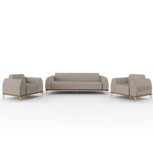 Com bastante personalidade e beleza ímpar o Kit Sofá 3 Lugares 180cm Com 2 Poltronas Molino Pés D'ouro D02 Linho Bege C-107 - Lyam Decor vem para requintar ainda mais sua decoração. Amplamente sofisticado, é ideal se você está buscando por peças elegantes e confortáveis. Possui acabamentos impecáveis, é estruturado em madeira de eucalipto tratado, unidas com grampos galvanizados, base envernizada e pés de alumínio com metalização na cor D’Ouro que o tornam ainda mais atraente e convidativo.